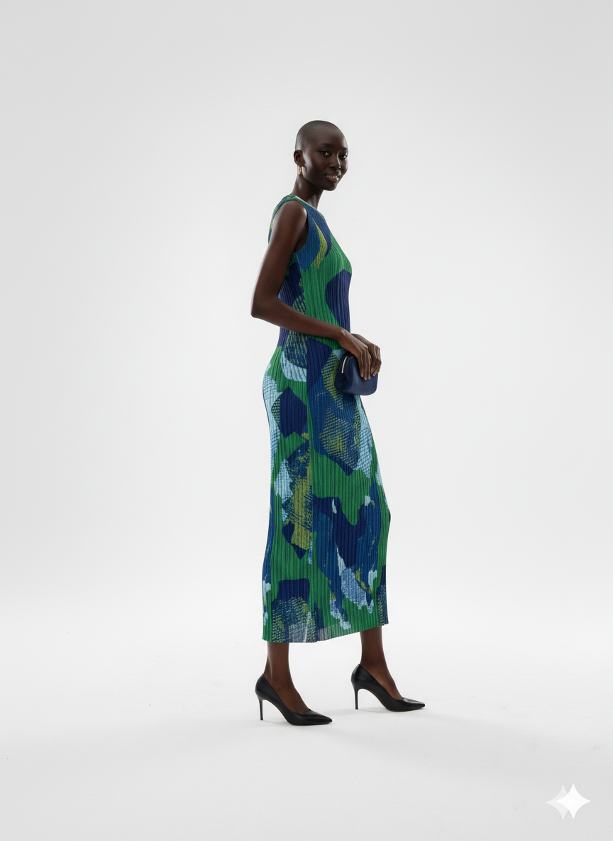 Abstract Jungle Pleated Midi Dress