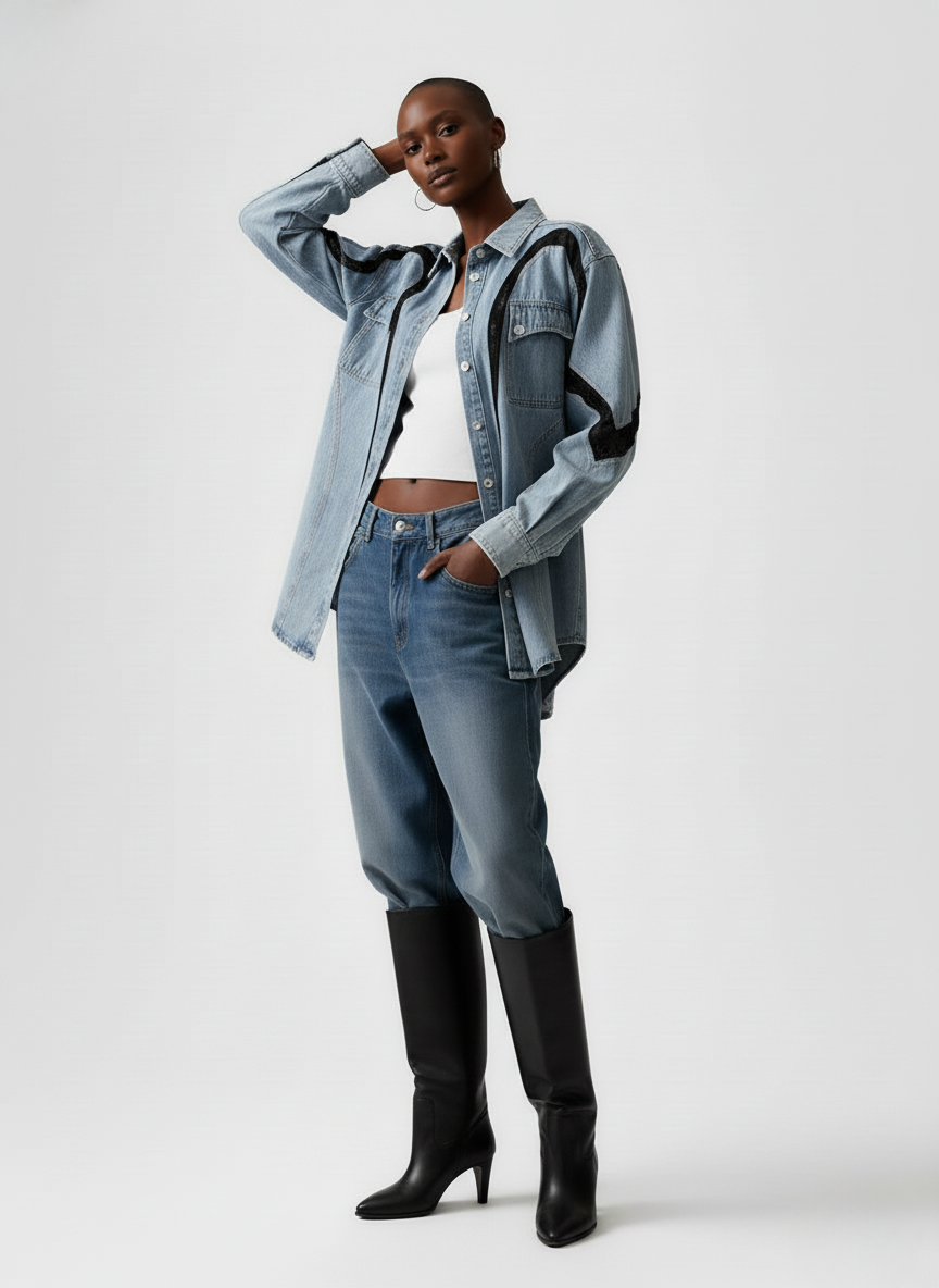 Elevate your outerwear collection with the Artline Structured Denim Overshirt, a piece that exudes effortless sophistication and street-savvy charm. Crafted for the modern woman, this jacket serves as the perfect layering companion for any occasion, inviting style that spans across seasons. Its delicate blend of cotton and polyester offers both comfort and durability, shaping an experience that's as stylish as it is functional.