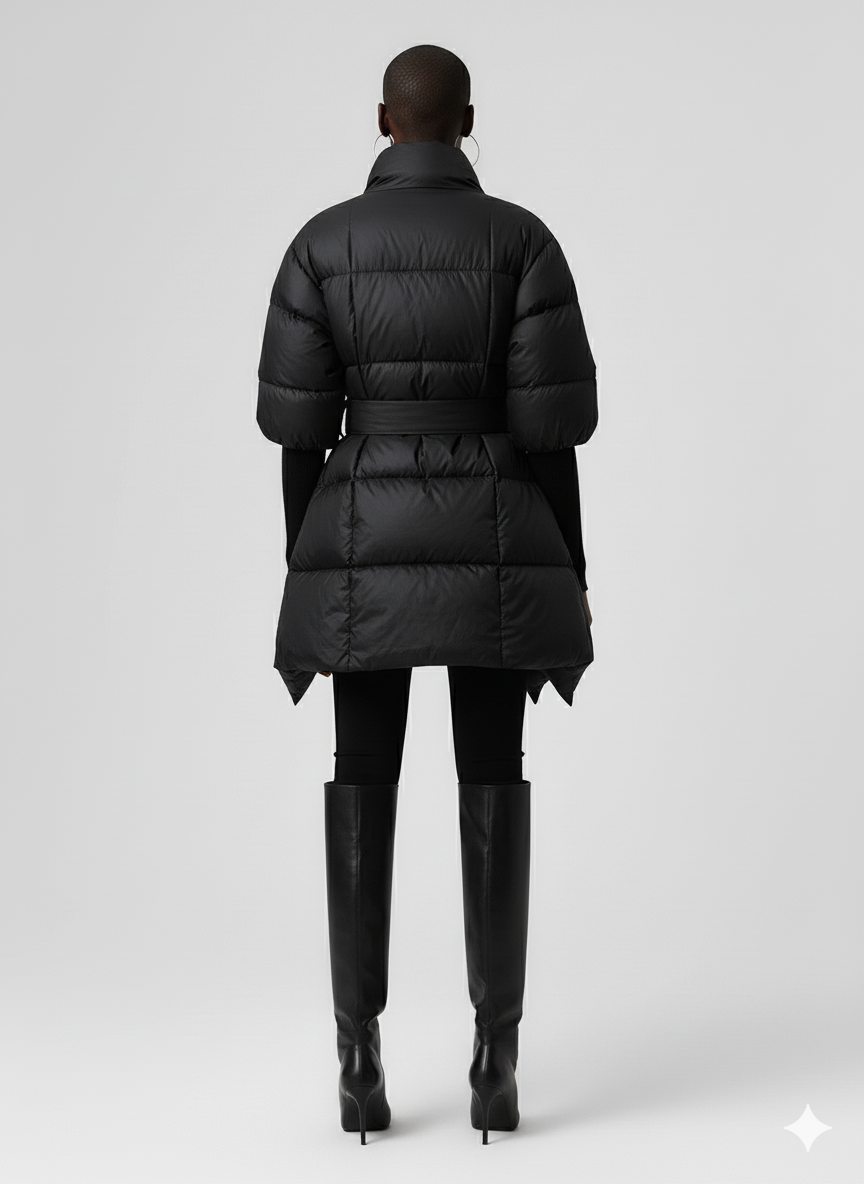 Make a bold statement against the cold with the Camouflage Belted Puffer Wrap Coat. This piece brilliantly...