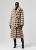 Meticulously constructed from ultra-soft, high-density synthetic faux fur, this coat provides exceptional warmth and a decadent feel. The fabric is expertly laid in clean, horizontal bands, adding depth and dimension to the design. It features a wide, shawl-style collar for extra coziness and an open-front design for effortless layering. The full-length cut ensures maximum coverage against the cold, while the smooth inner lining provides comfort against your clothing. This is the ultimate investment piece for elevated winter style.