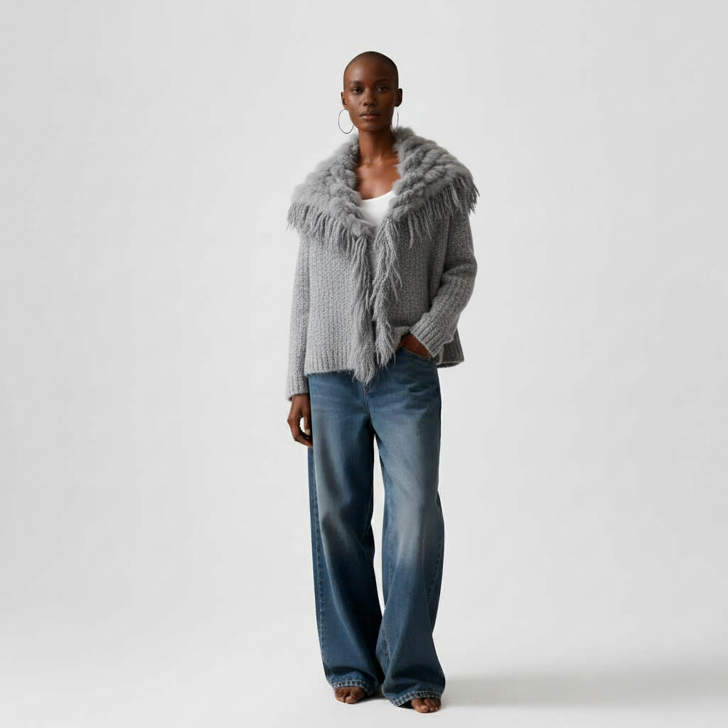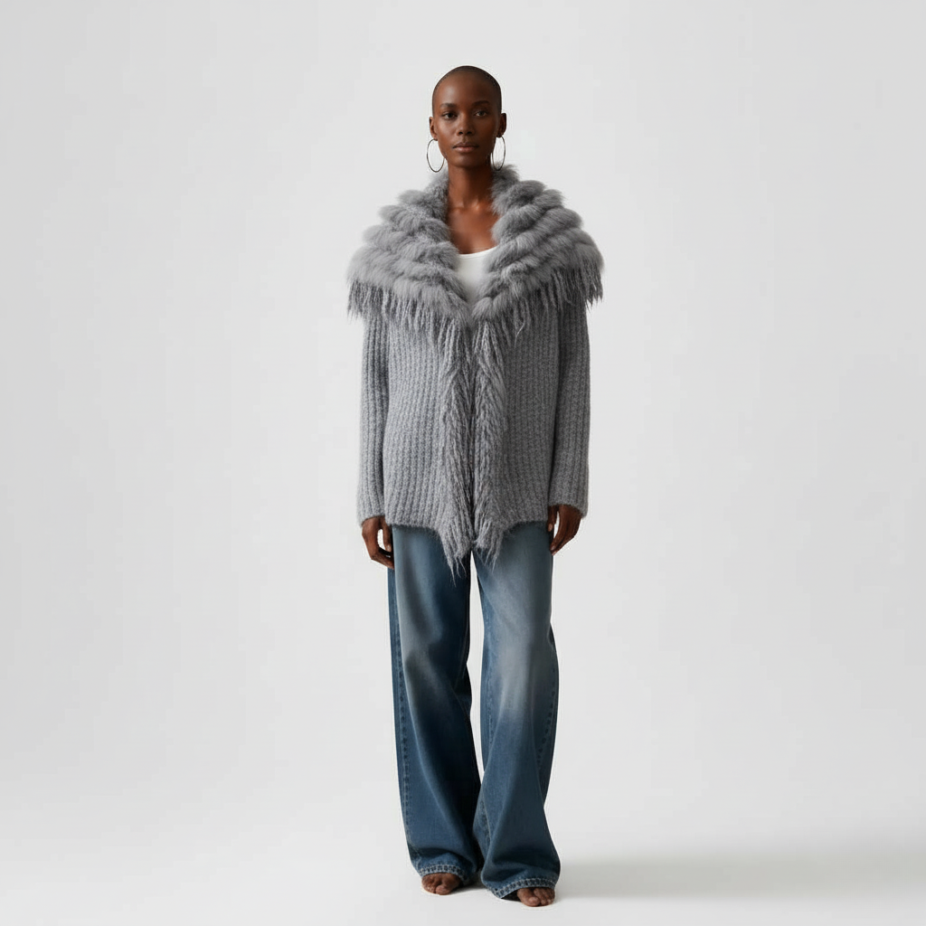 Envision pairing this luxurious cardigan with a fitted turtleneck and tailored trousers for the office, or draping it over a flowing maxi dress for evening gatherings under the stars. Its timeless design allows for enduring style, whether layered in the cooler months or worn as a standalone piece when the weather warms. Unlock the potential of your wardrobe, showcasing grace and sophistication in every ensemble.