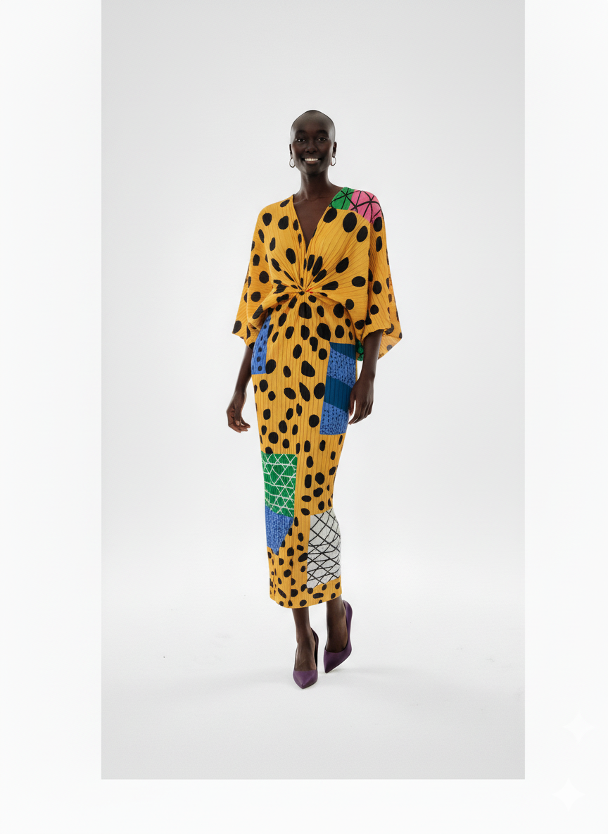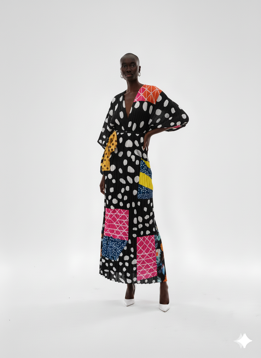 Chic Patchwork Polka Dot Midi Dress