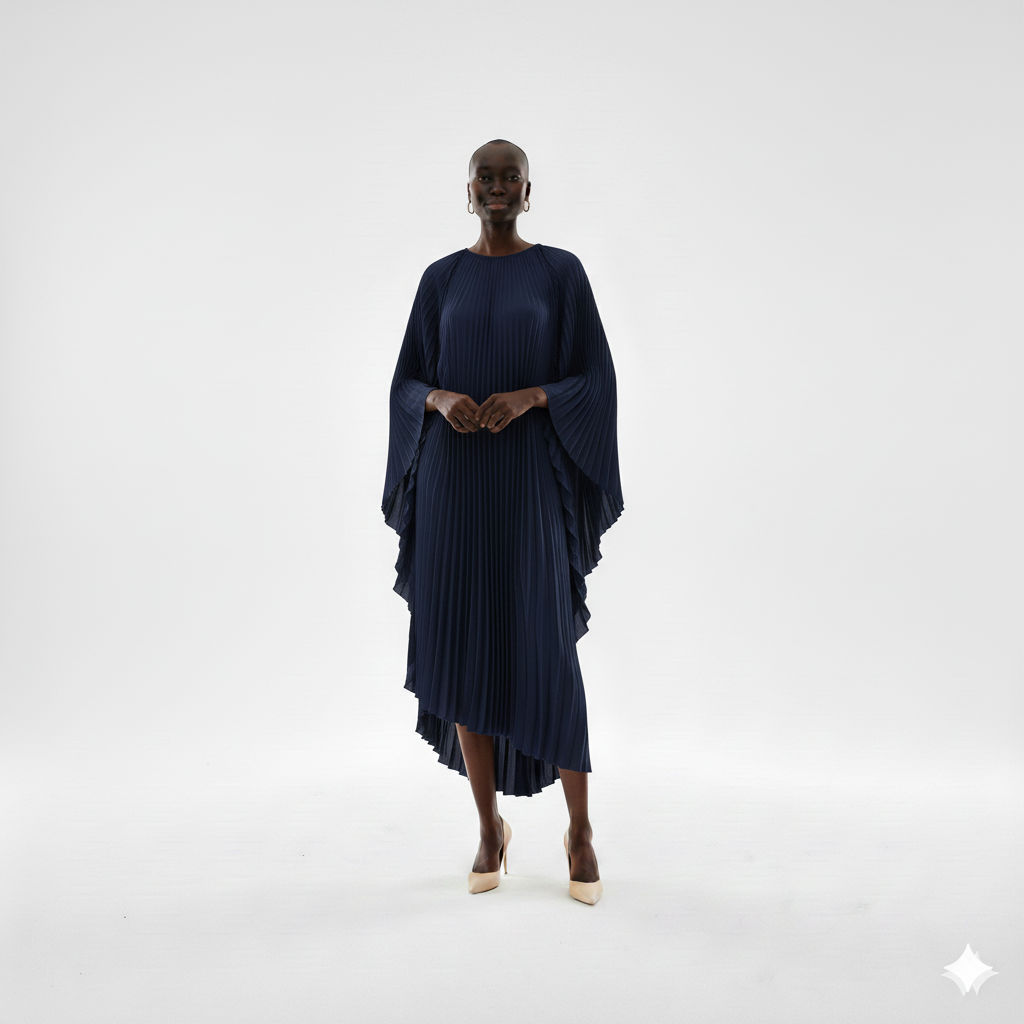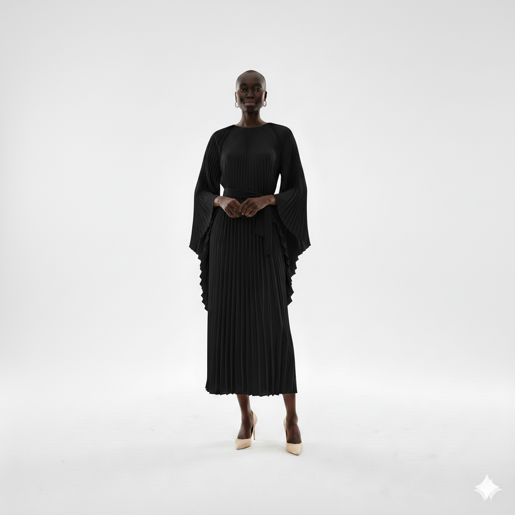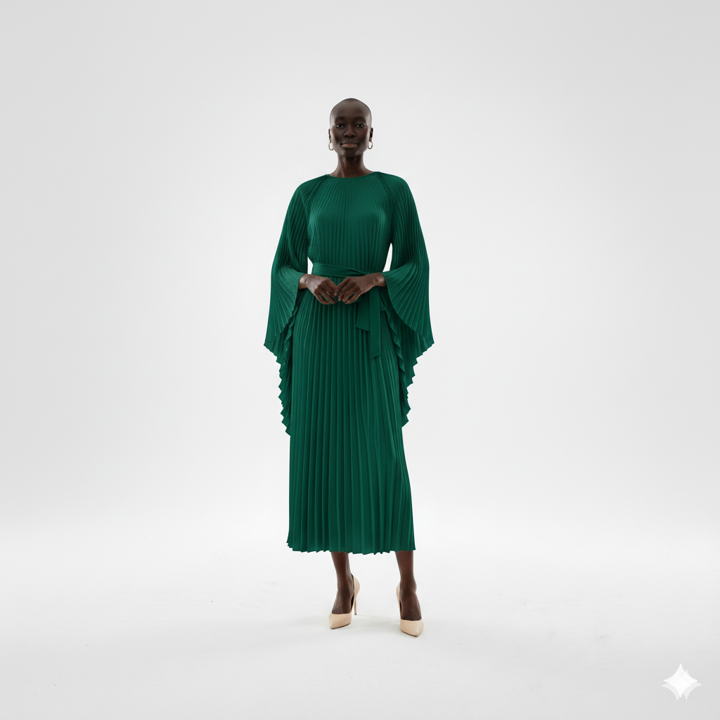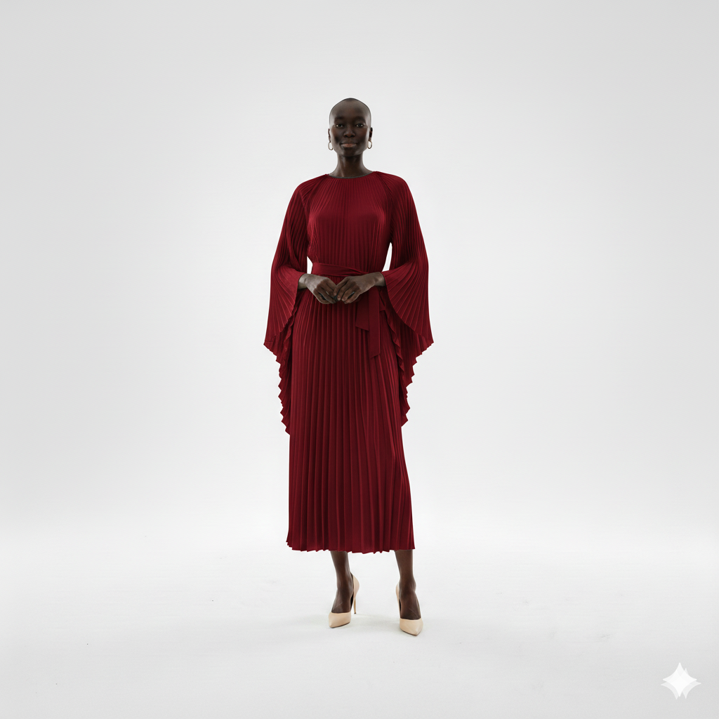 Elegant Cream Pleated Midi Dress