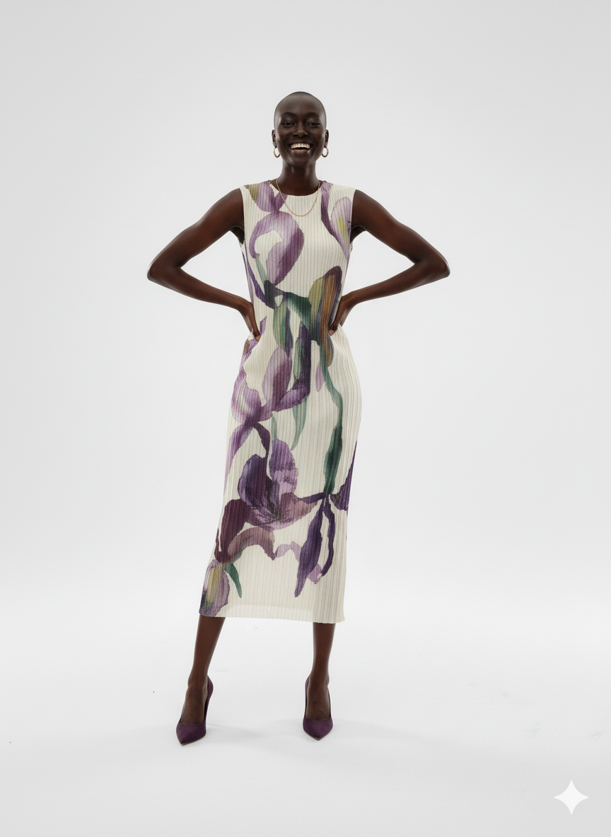 Midnight Bloom Pleated Dress