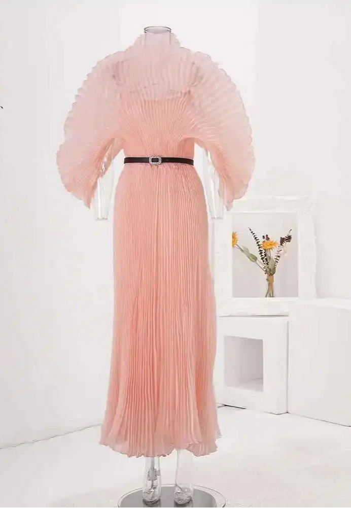 Pleated Blush Pink Maxi Dress