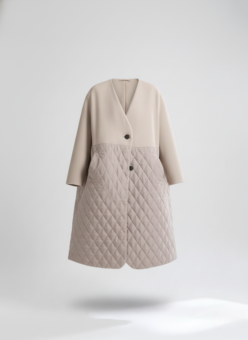 Embrace urban sophistication by pairing the Quilted Graceline Overcoat with tailored trousers and ankle boots for the office. For a chic weekend look, layer over a fitted turtleneck and high-waisted jeans. Transition effortlessly into evening style by cinching at the waist with a statement belt, and complement with bold accessories. This overcoat invites endless styling possibilities, making it your go-to for any setting.