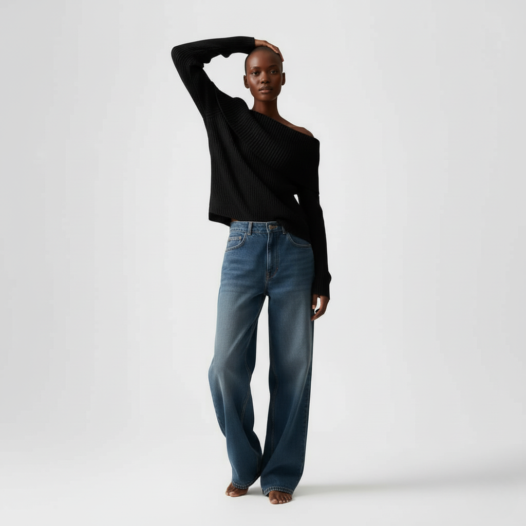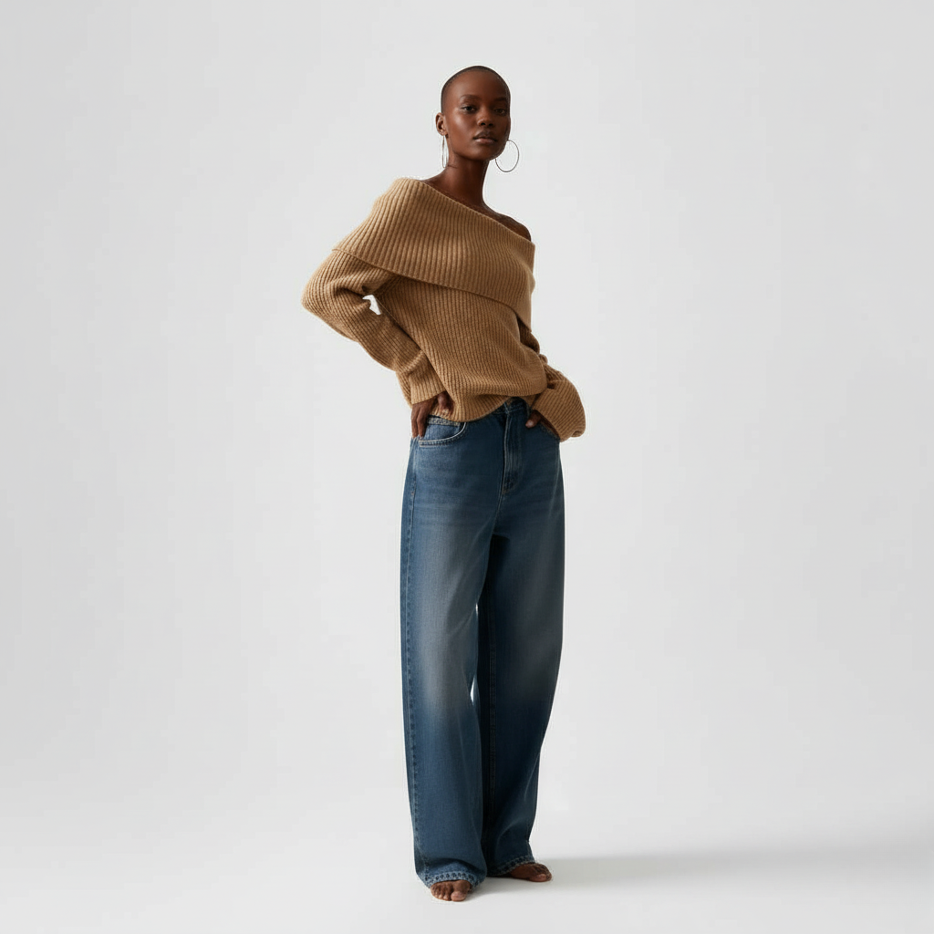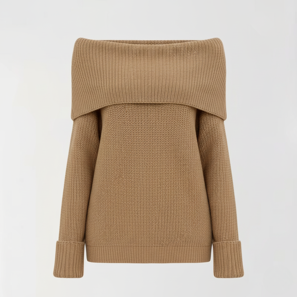 For an effortlessly chic street style, pair this knit with high-waisted jeans and ankle boots, or layer it over a sleek skirt for an elevated evening look. Accessorize with statement jewelry and a crossbody bag for a touch of sophistication. Whether you're meandering through the city or gathering with friends, this off-shoulder knit is a quintessential addition to your wardrobe, embodying a spirit of timeless grace and contemporary flair.