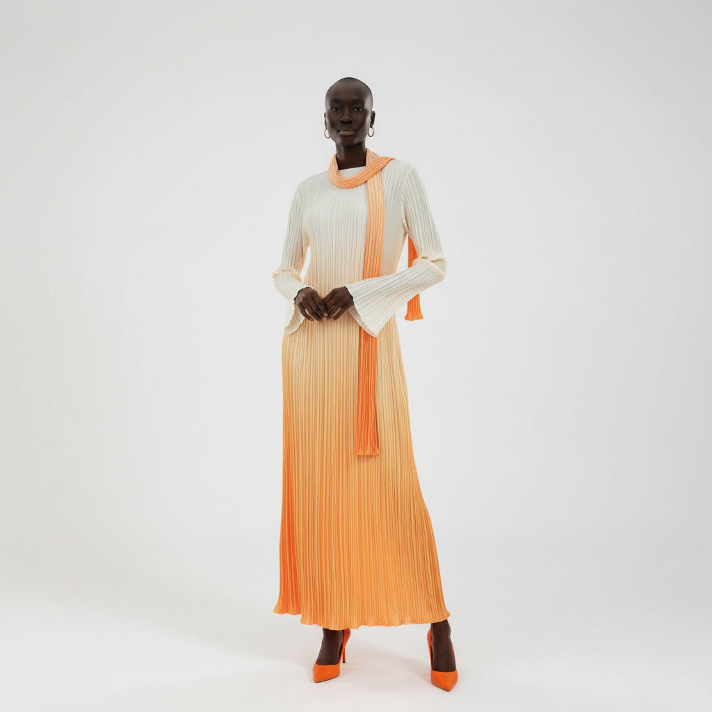 Sky‑To‑Sand Pastel Ombre Pleated Dress
