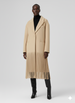 This coat features a classic notched lapel and a clean, single-breasted design, giving it the sharp structure of a perfectly tailored blazer. The shoulders are slightly oversized for a modern, relaxed fit that embodies contemporary luxury. The true focal point is the bold, generous fringe trim that begins at the knee, transforming the coat from a simple garment into a walking piece of art. The neutral oatmeal/ecru color palette keeps the look sophisticated and easy to pair.