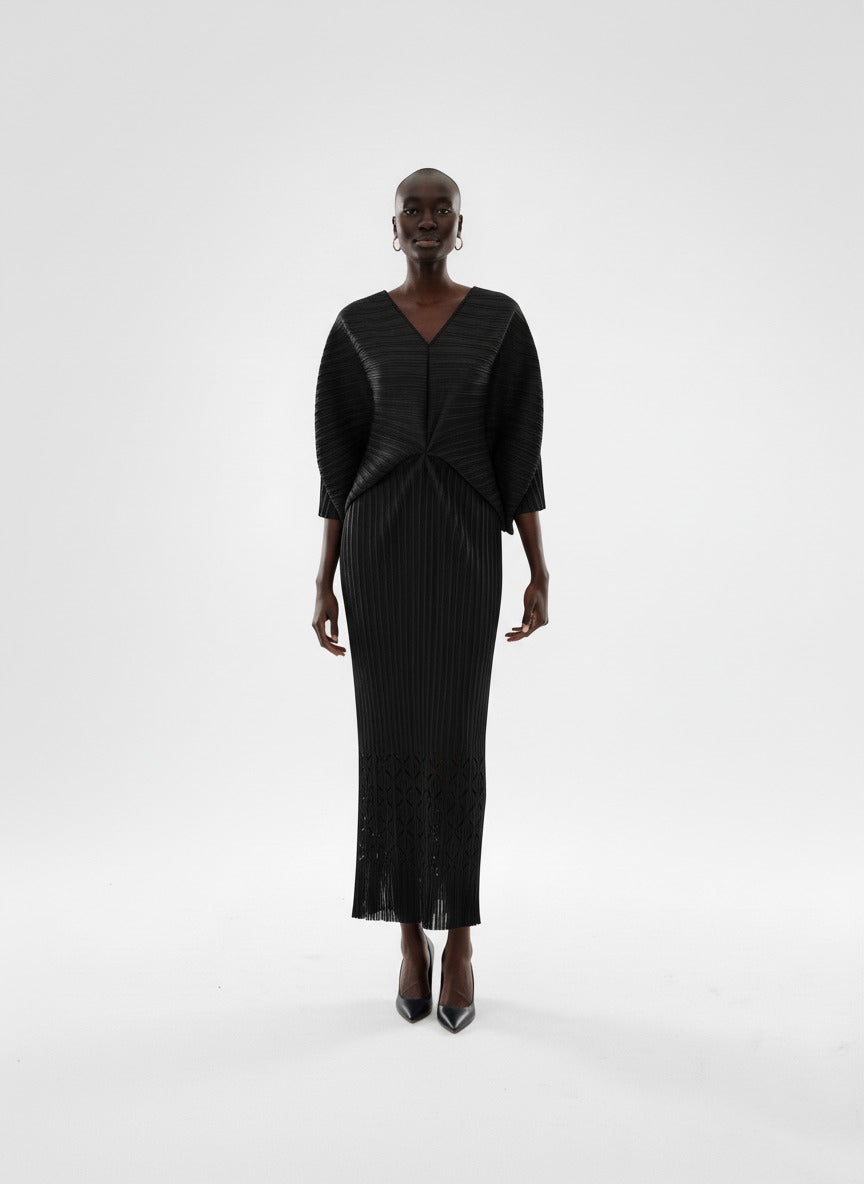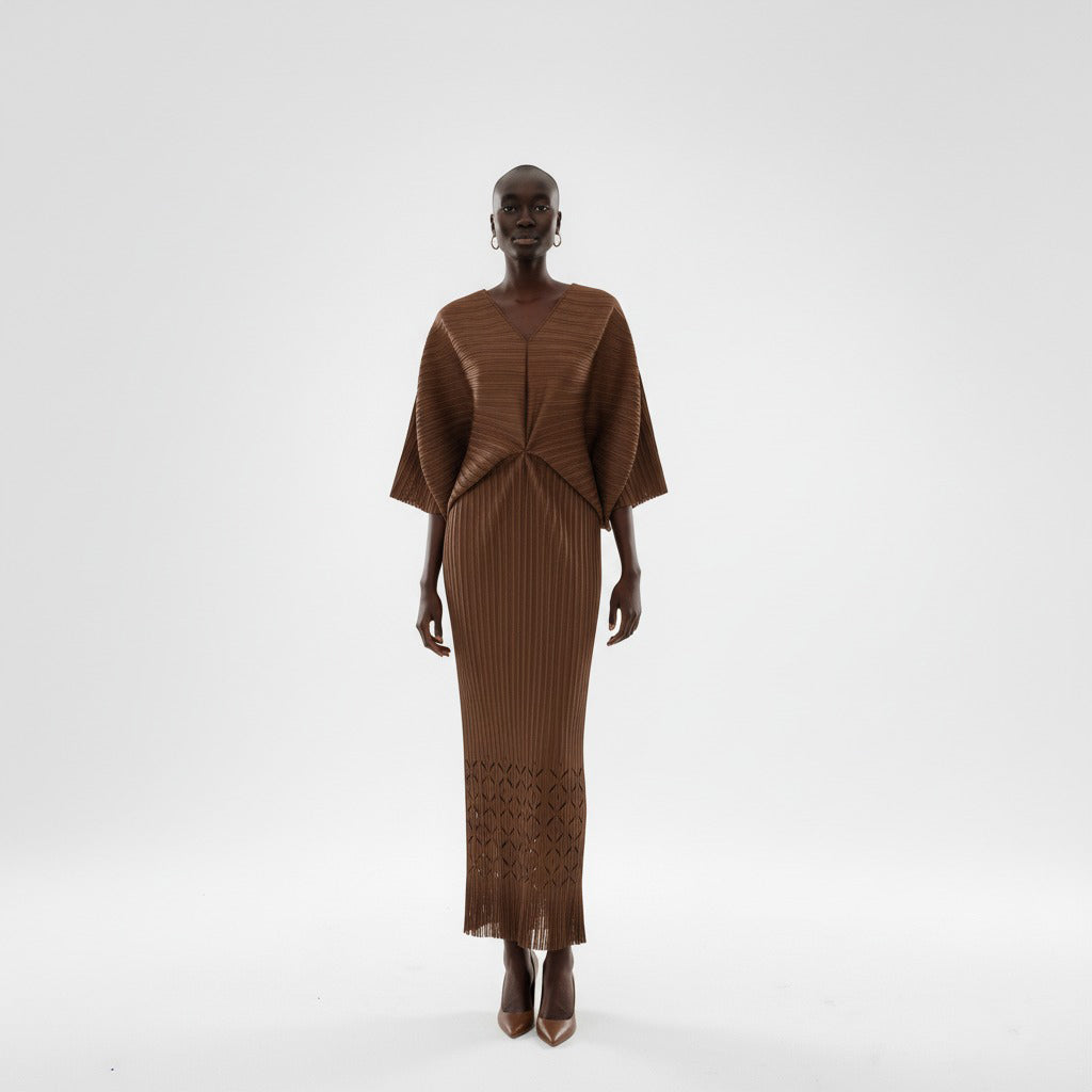 Teal Sculpted Pleated Kaftan Dress