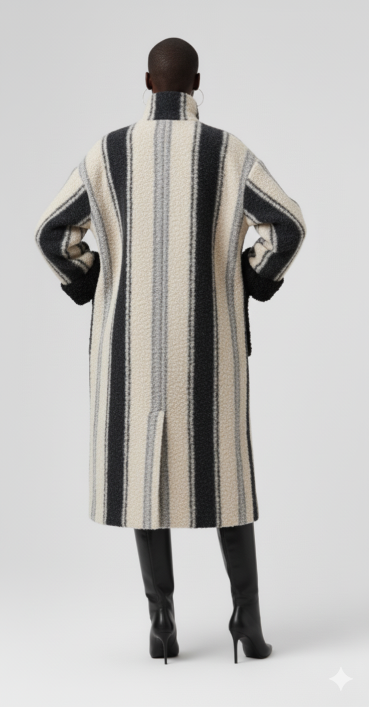 Step out in cozy, contemporary style with the City Stripe Textured Long Coat, designed for sophisticated layering...