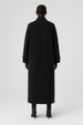 This coat requires minimalist styling to let its unique shape shine. Pair it with sleek, monochromatic pieces—such as white or cream trousers and gray leather boots—to emphasize the architectural lines. For an elevated look, wear it over a fitted black turtleneck and wide-leg pants. The high funnel neck eliminates the need for a scarf, making it perfect for showing off bold earrings or simply maintaining a clean, uninterrupted silhouette. This coat effortlessly blends cozy comfort with modern, high-fashion sophistication.