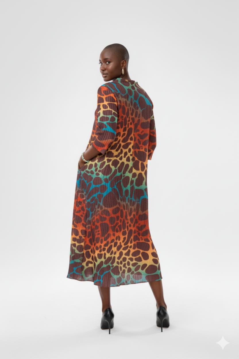 Capture the room with The Solari Midi Dress, a stunning piece that marries fluid comfort with dynamic...