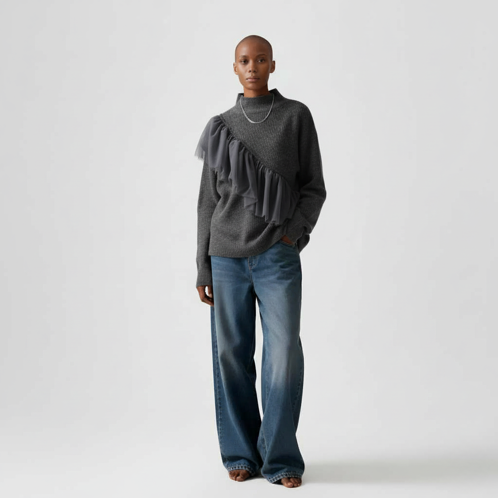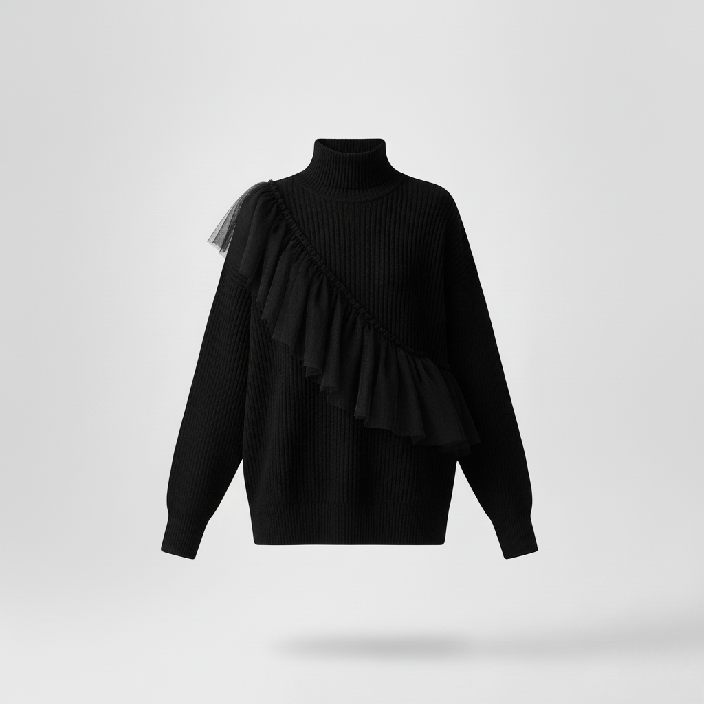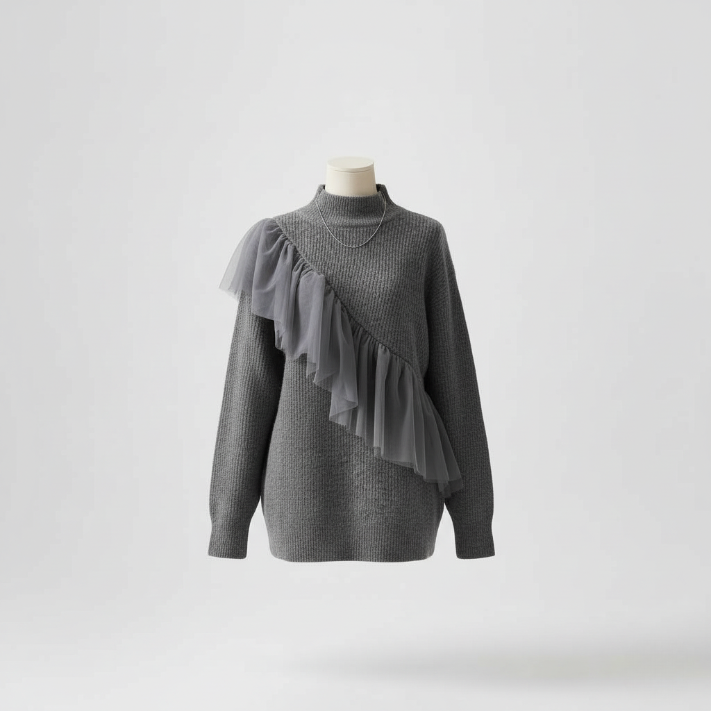 Discover the Urban Drama Layered Tulle Pullover—a seamless blend of comfort and elegance that transforms every outfit. Designed for the modern woman navigating the pulse of urban life, this piece invites a sense of effortless sophistication while keeping you snug and stylish. With its elegant knit craftsmanship and contemporary aesthetic, this pullover is perfect for layered looks or for making a bold statement on its own.
