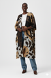 Expertly crafted from a high-quality, plush polyester, this cardigan provides a substantial, down-like warmth perfect for the winter season. The fabric is adorned with an intricate and eye-catching geometric pattern in rich camouflage tones, evoking a vintage, bohemian aesthetic. The exquisite detailing reflects a handcrafted feel, elevating this piece from a simple outerwear to a true work of art.