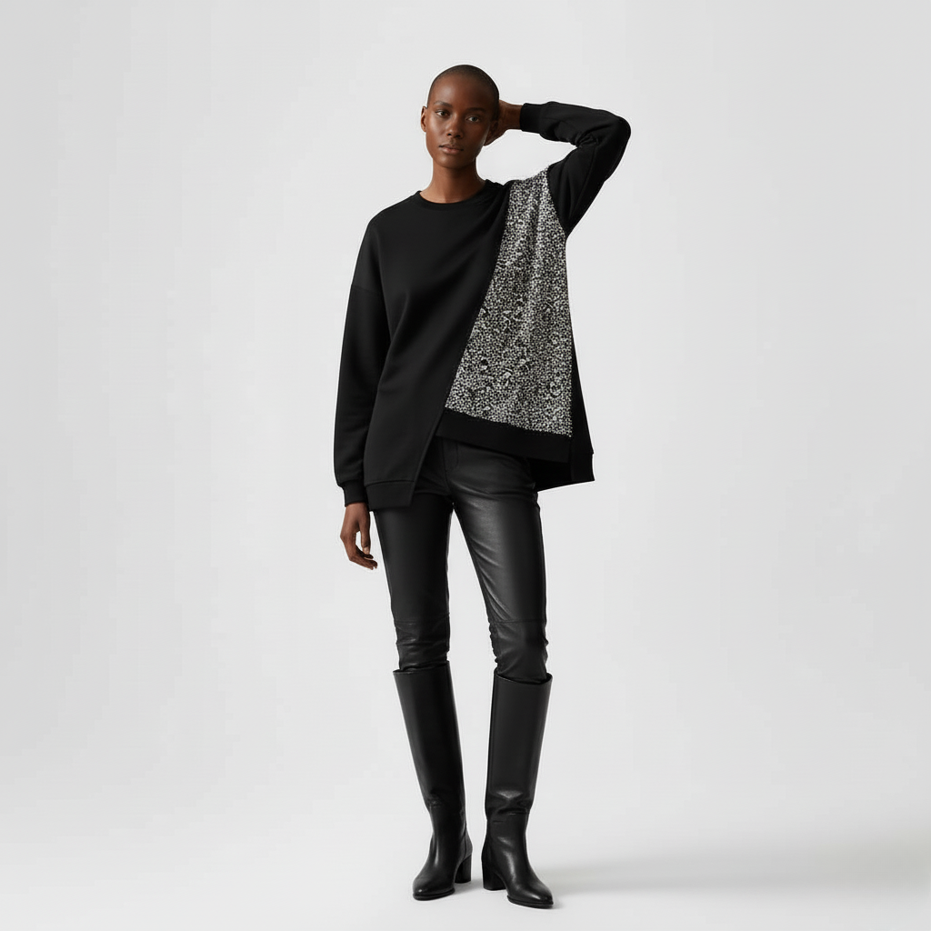 Imagine pairing this versatile sweater with tailored trousers for a polished office look or with denim for a casual yet chic weekend ensemble. Layer it over a sleek midi dress for an effortless transition from day to evening or accessorize with statement jewelry to create that perfect urban-inspired outfit. The Urban Edge Asymmetry Sweater is your canvas for modern expression, inviting endless styling possibilities.